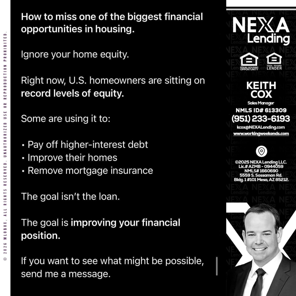 Hi, my name is Keith Cox. I’m a Loan Officer with NEXA Lending LLC., offering personalized mortgage solutions, fast customized quotes, great rates and service with integrity.