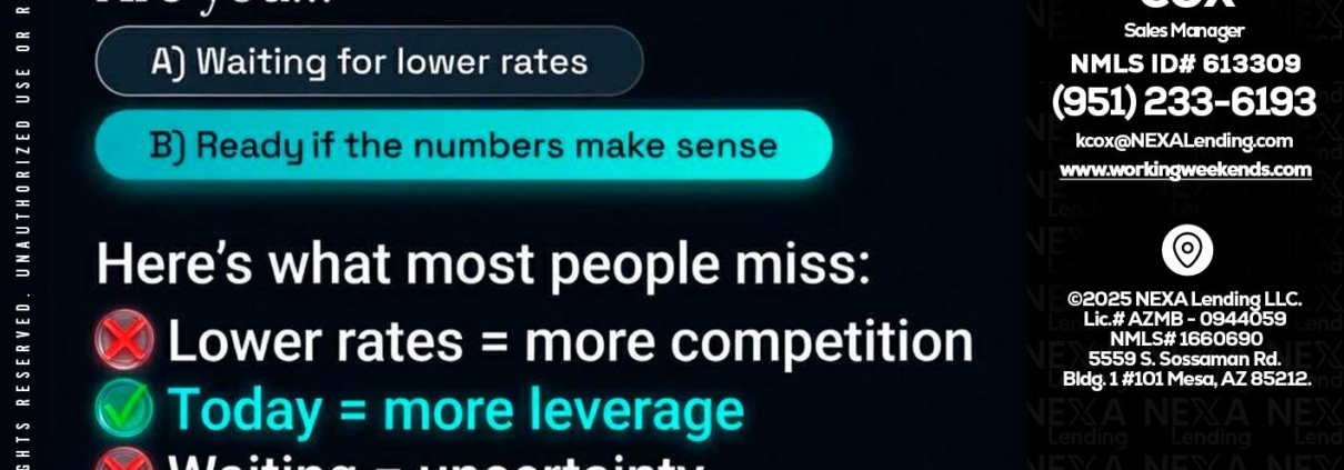 Hi, my name is Keith Cox. I’m a Loan Officer with NEXA Lending LLC., offering personalized mortgage solutions, fast customized quotes, great rates and service with integrity.