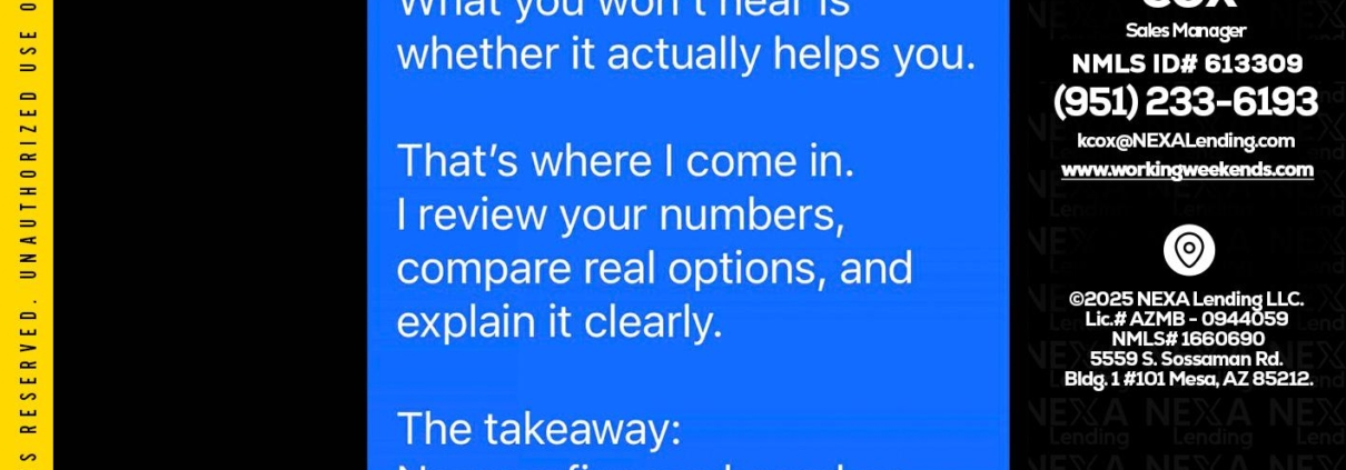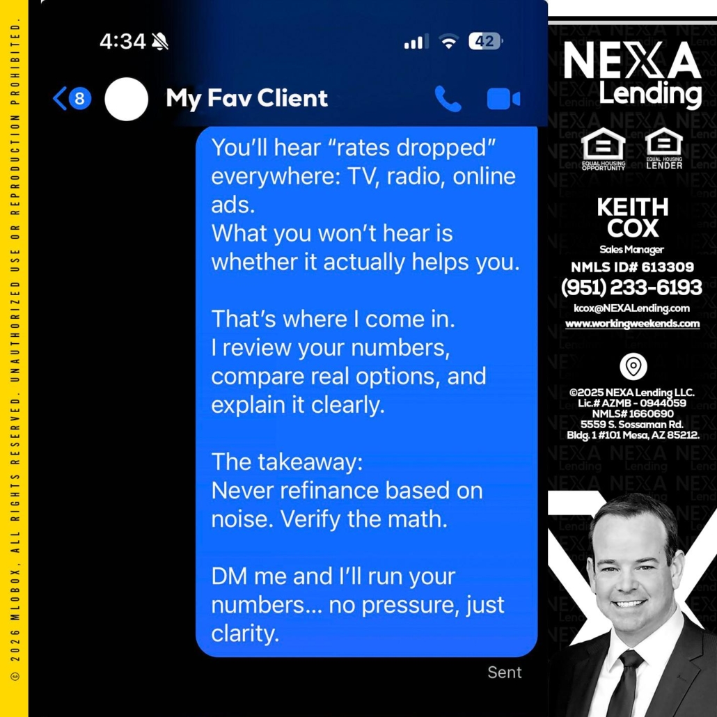 Hi, my name is Keith Cox. I’m a Loan Officer with NEXA Lending LLC., offering personalized mortgage solutions, fast customized quotes, great rates and service with integrity.