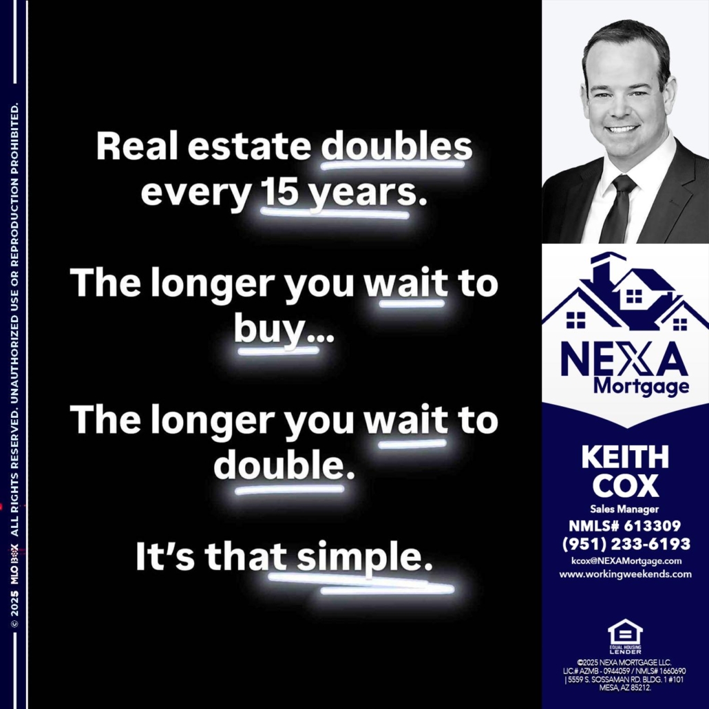 Hi, my name is Keith Cox. I’m a Loan Officer with NEXA Mortgage LLC., offering personalized mortgage solutions, fast customized quotes, great rates and service with integrity.