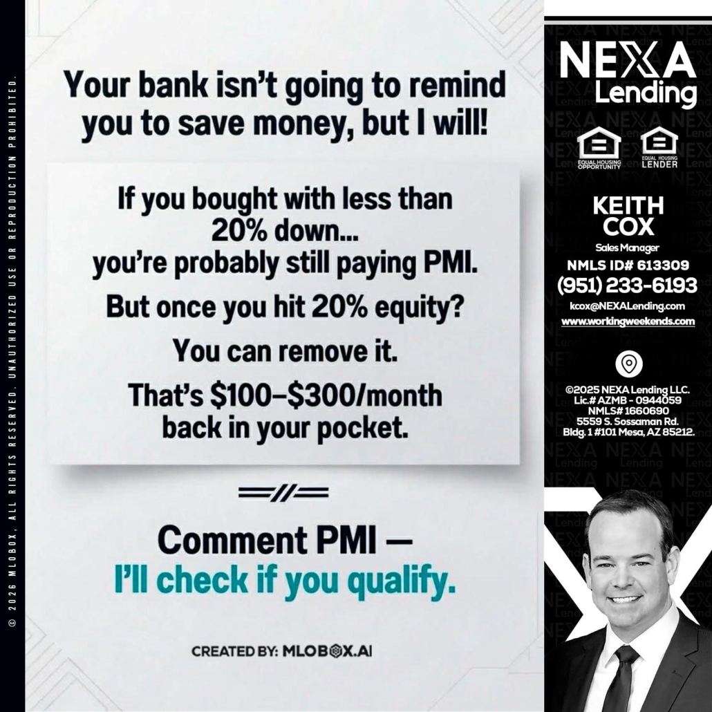 YOUR BANK ISNT - Keith Cox -Sales ManagerHi, my name is Keith Cox. I’m a Loan Officer with NEXA Lending LLC., offering personalized mortgage solutions, fast customized quotes, great rates and service with integrity.